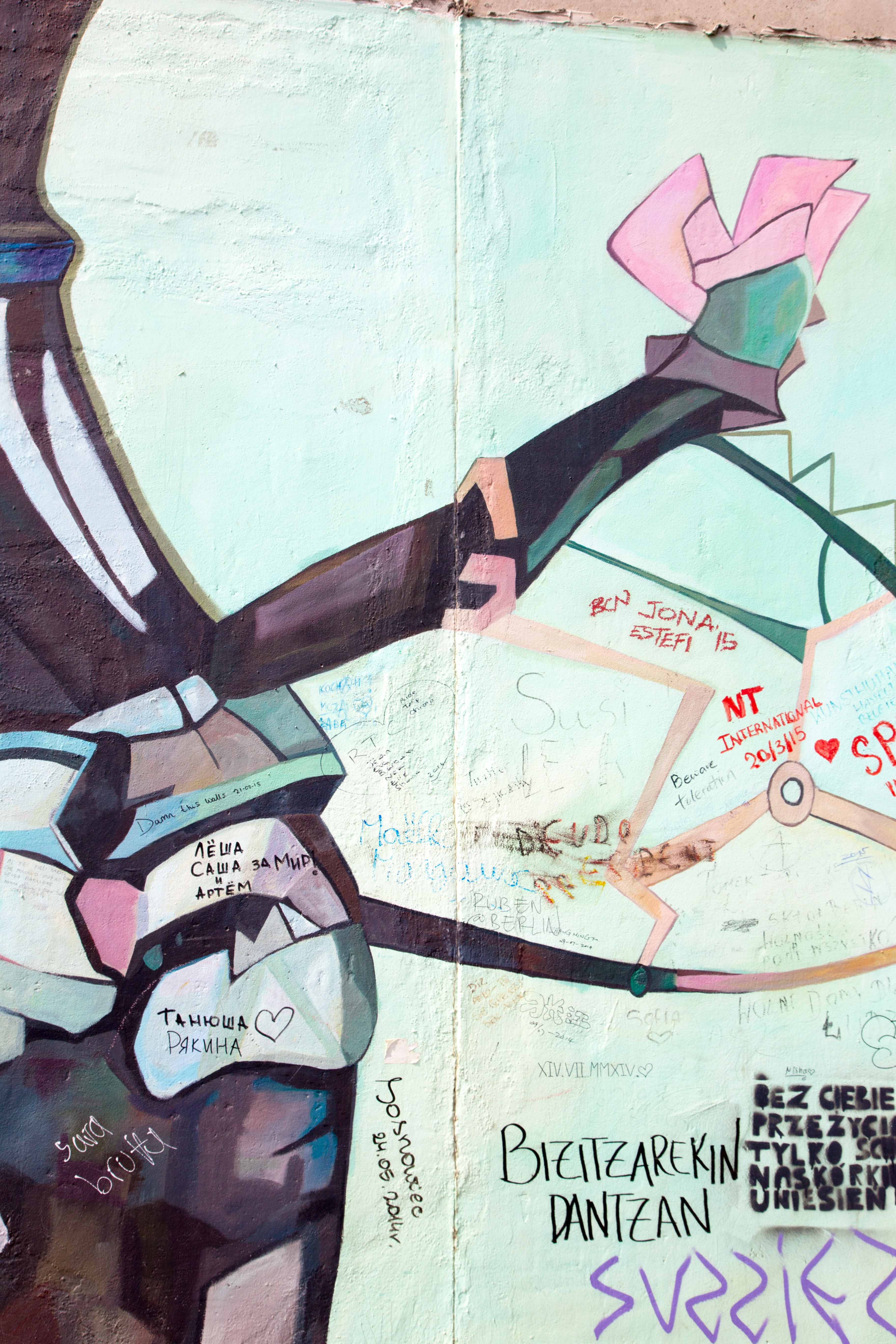 We ended up hanging out the following day and walked around Berlin. We saw the East Side Gallery, of course that was only when not getting photobombed by selfie-sticking Japanese tourists and droves of teenagers. But at least there was some paint still wet so we could make our mark on the Wall… Thanks Jenny whoever you are!