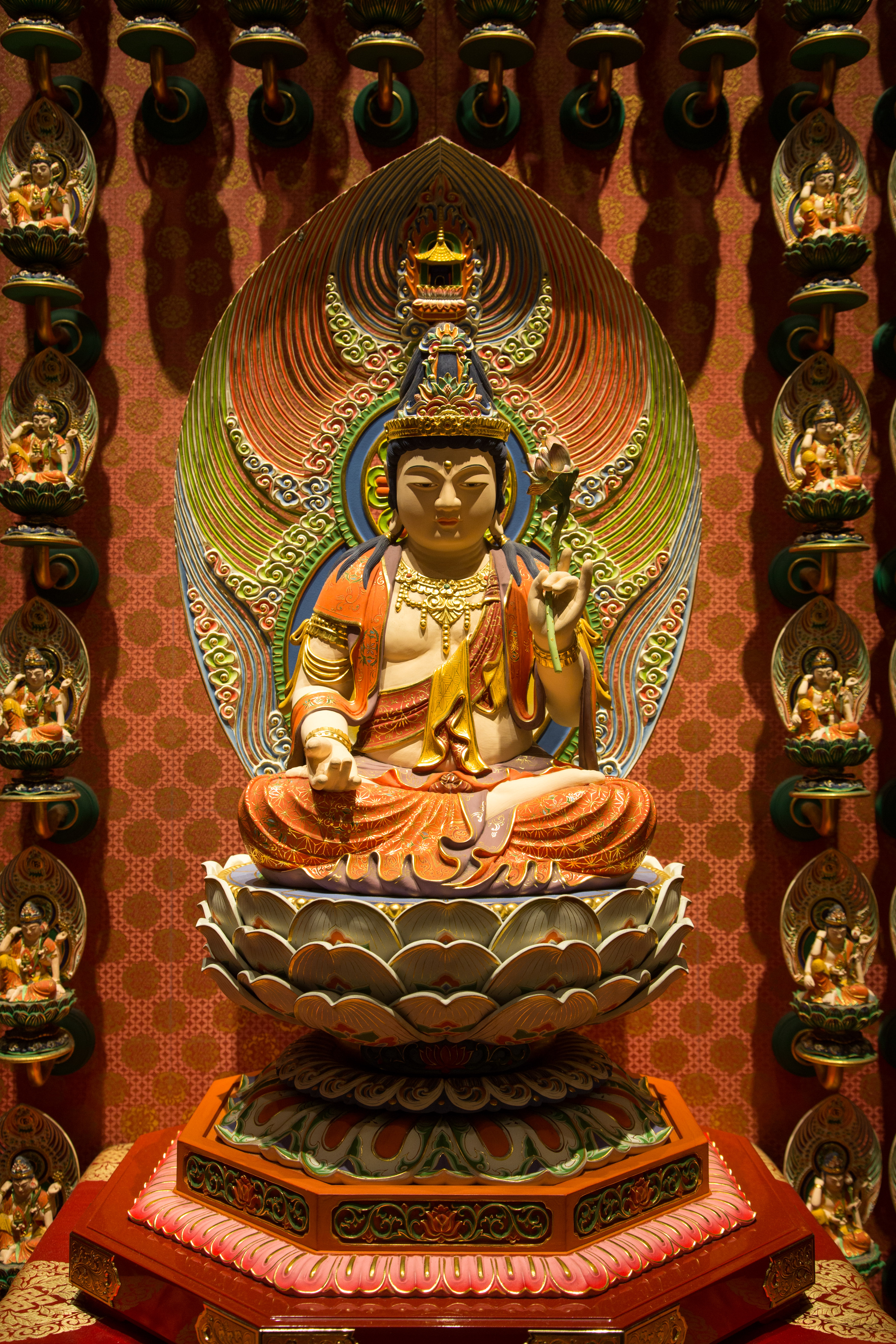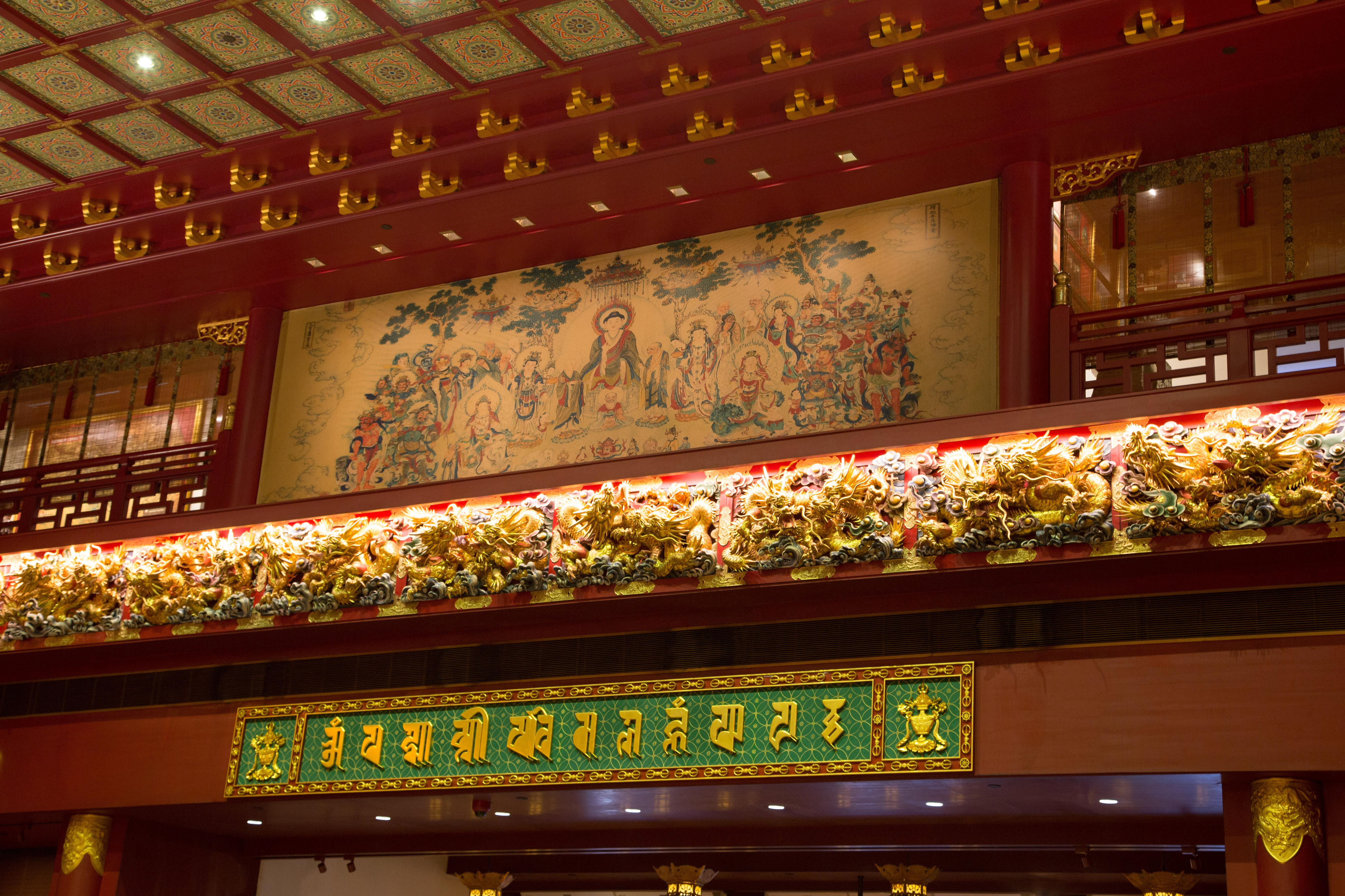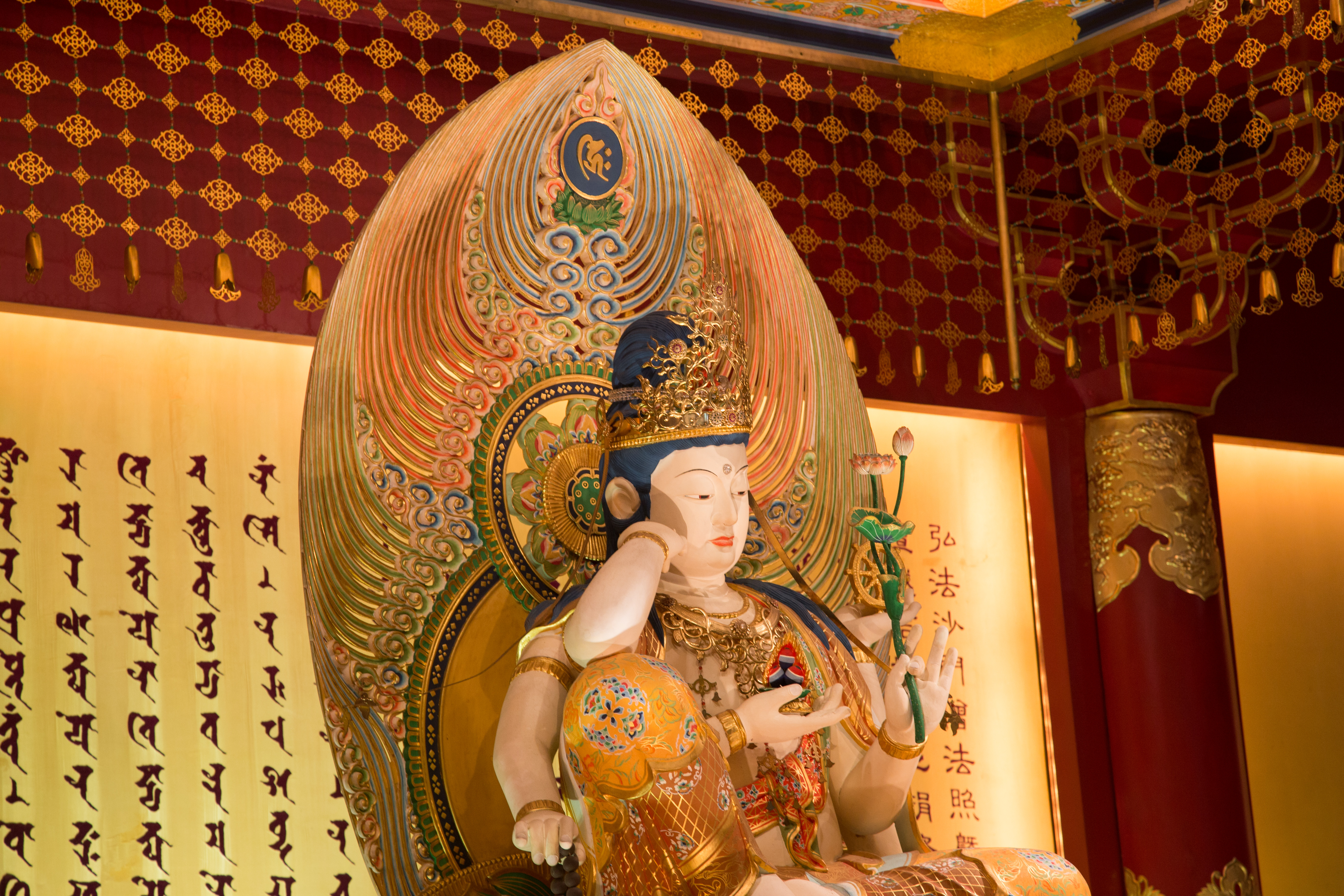 The Buddha Tooth Relic Temple is a Tang Dynasty-style temple housing religious relics and has ornate rooms.