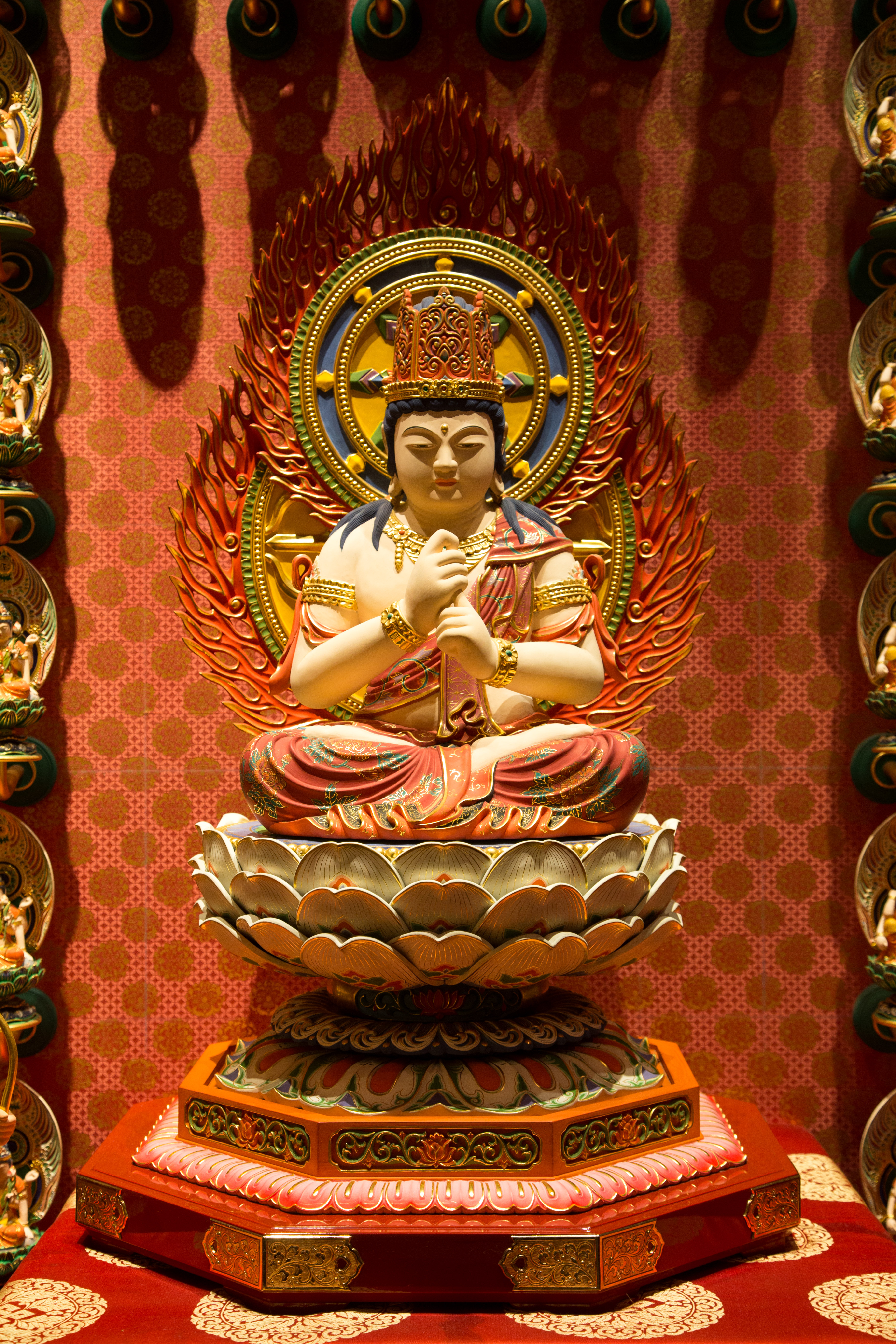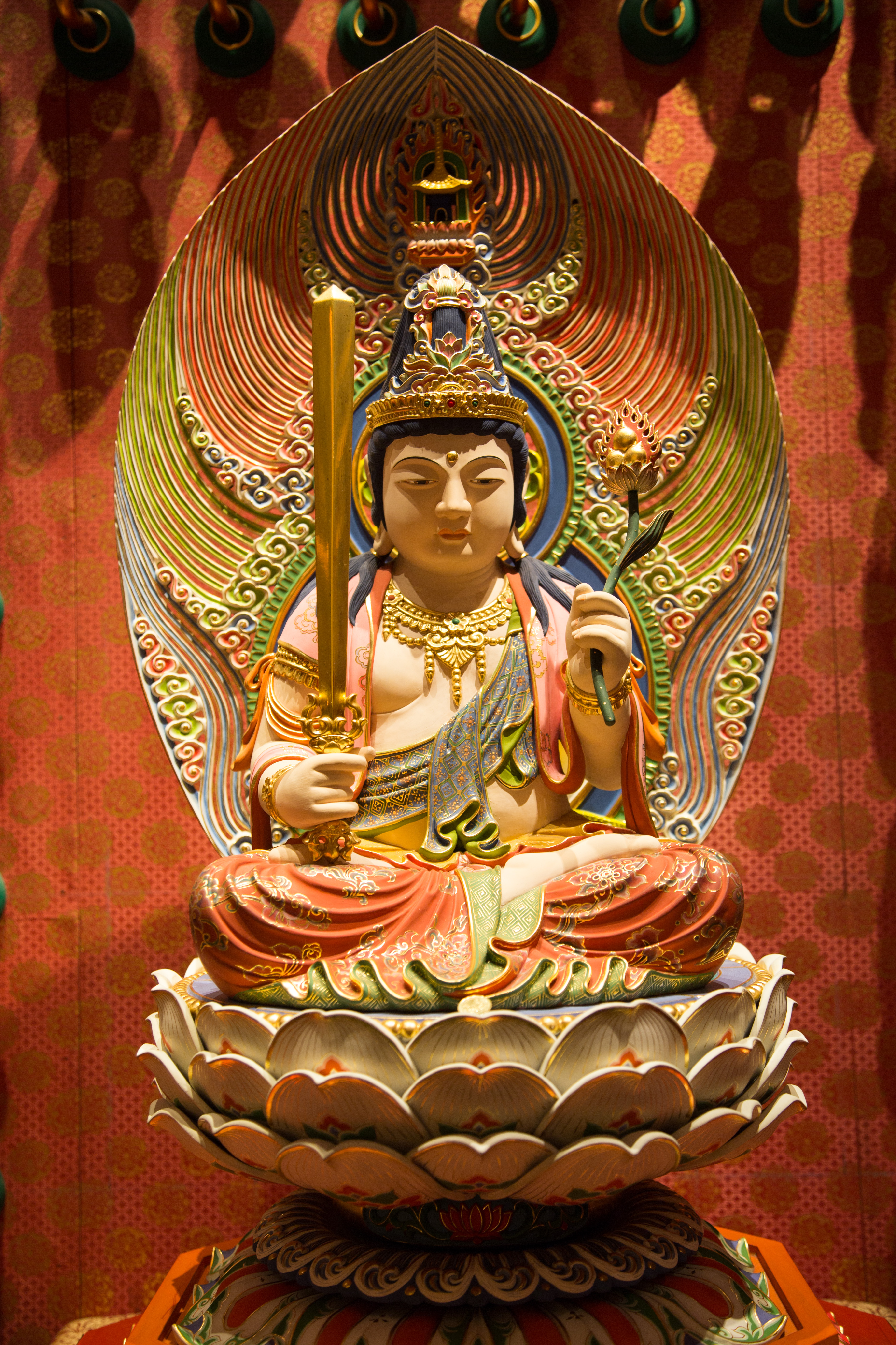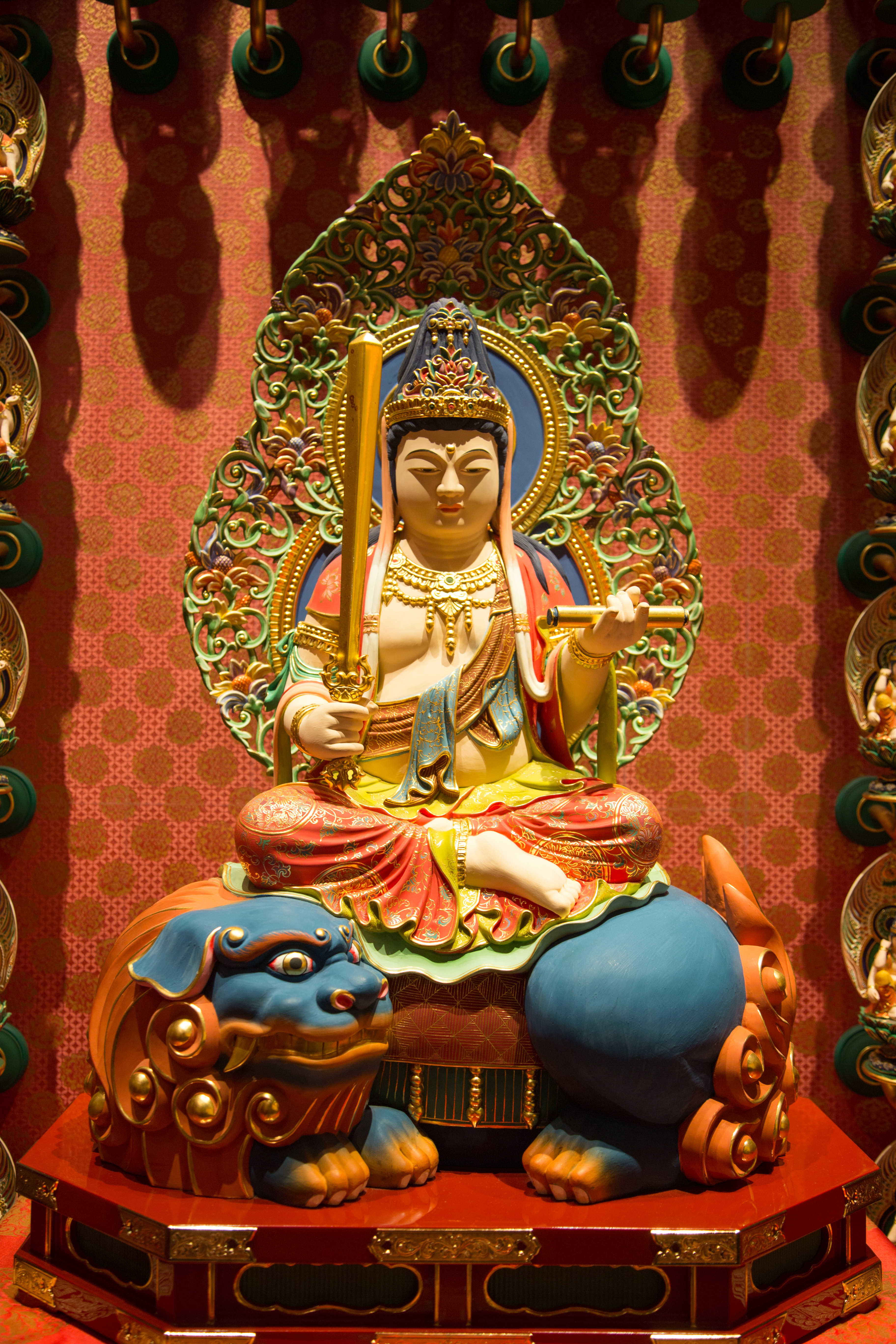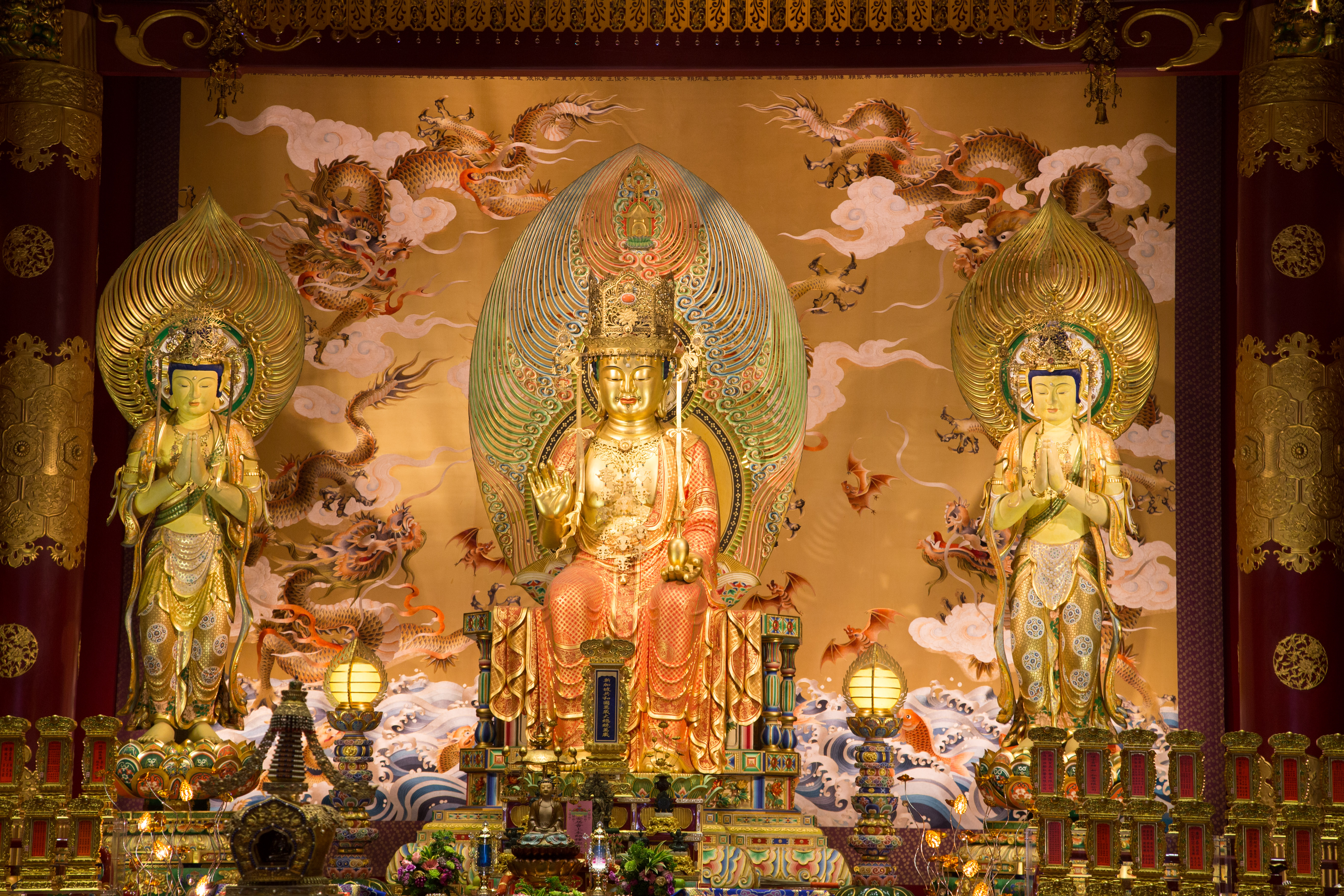 The Buddha Tooth Relic Temple is a Tang Dynasty-style temple housing religious relics and has ornate rooms.