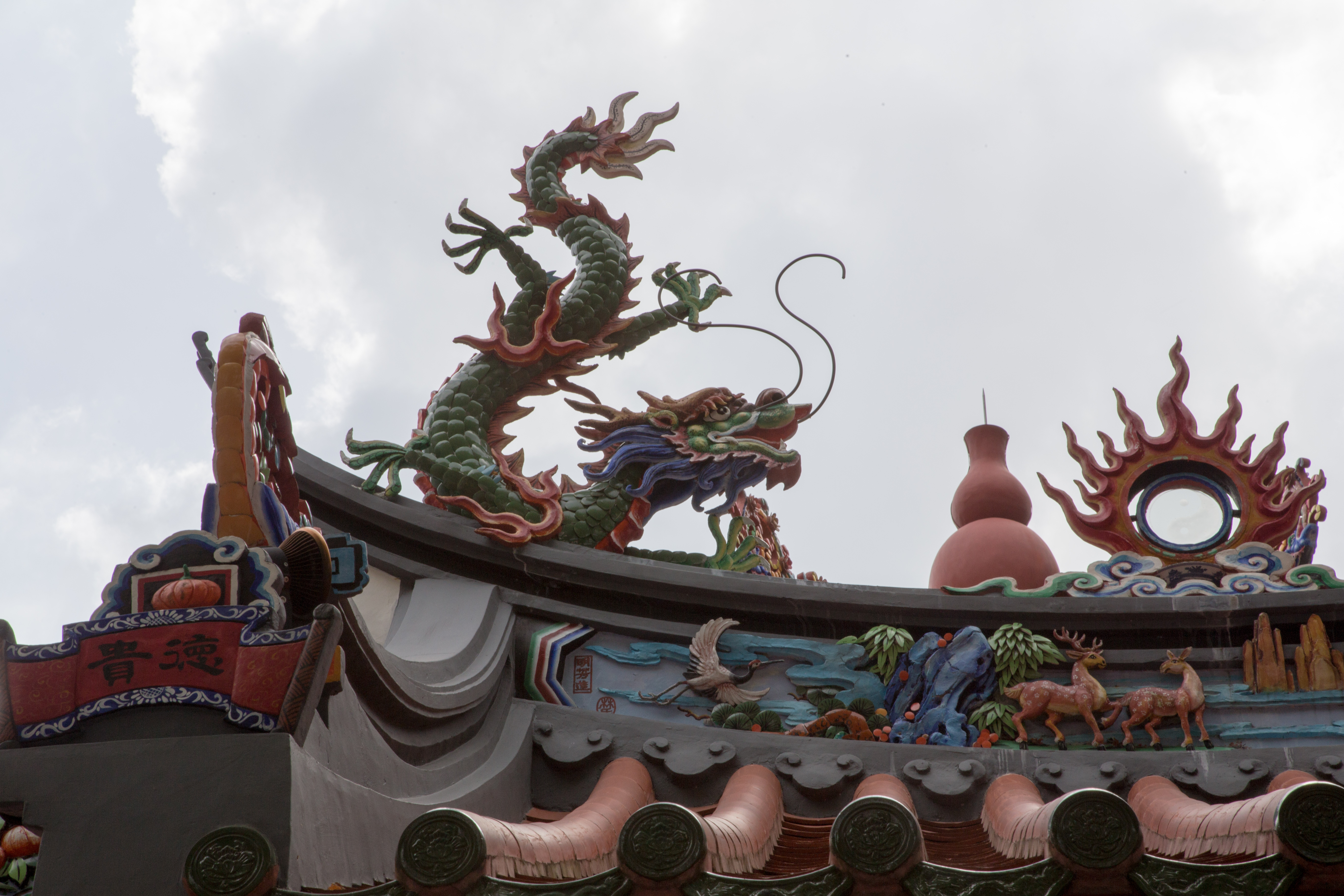 5. Once again we see beautiful contrasts between the old and the new. Colors are great… then seeing the dragons and atop some buildings people sitting around (wonderful statues ).