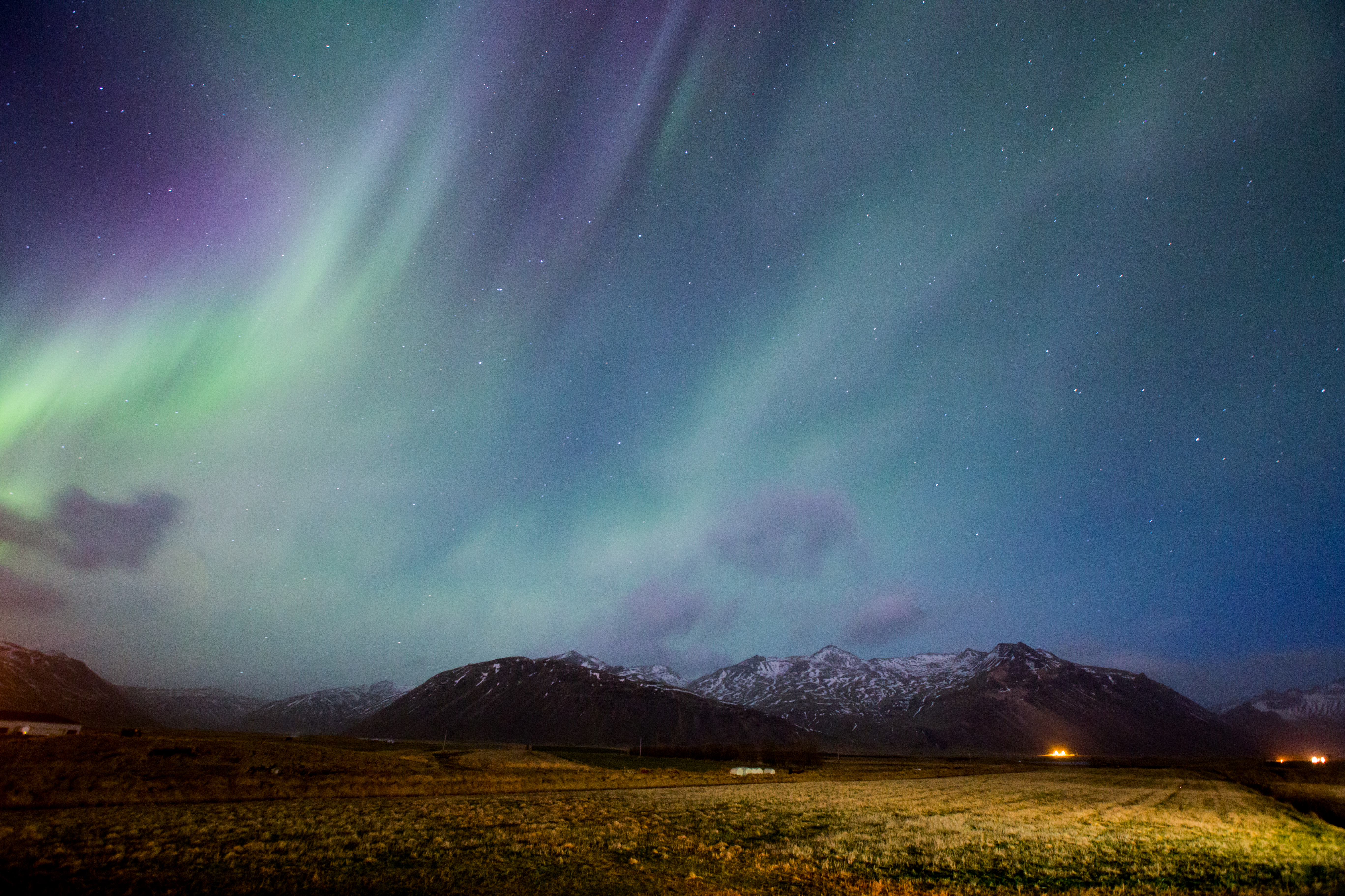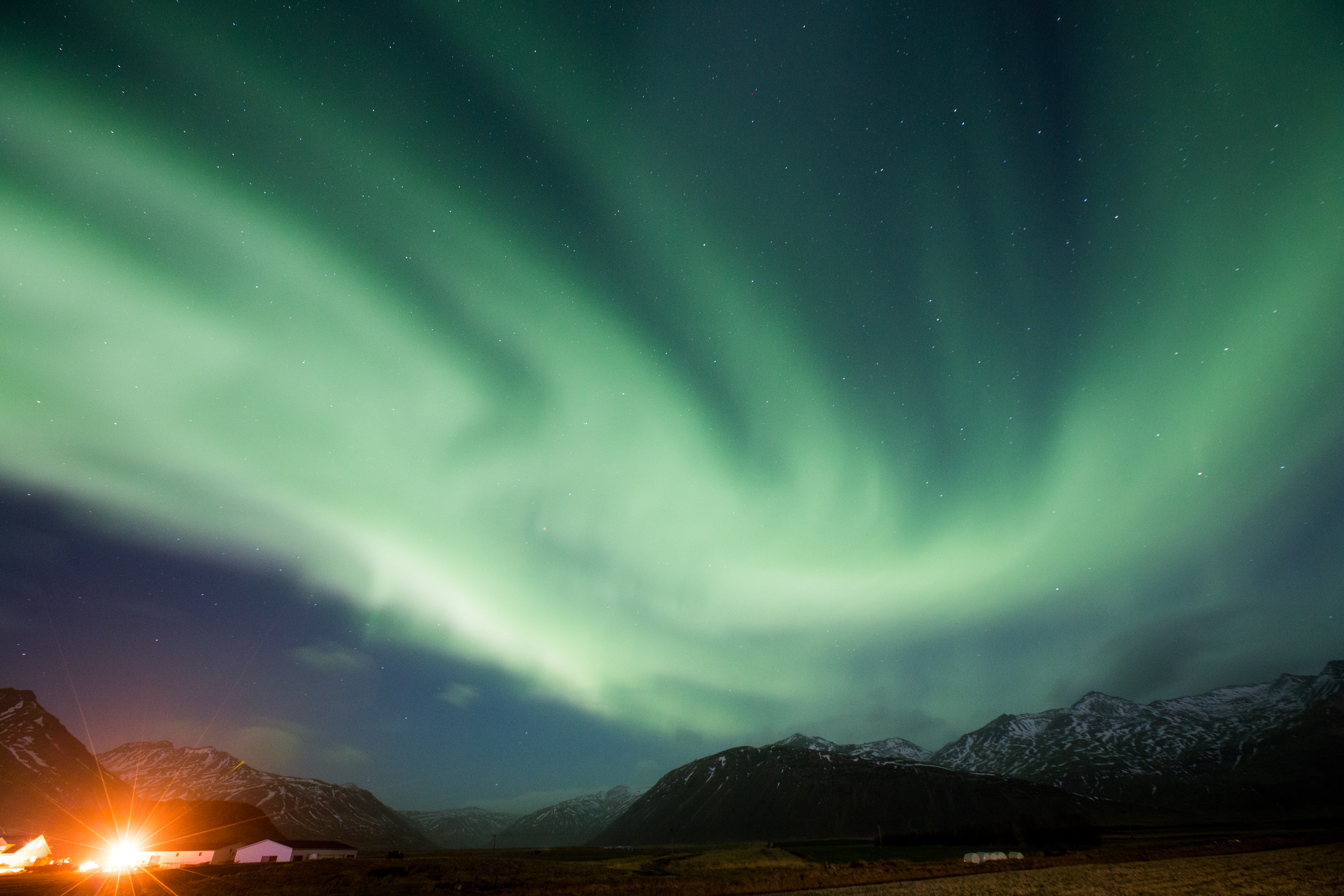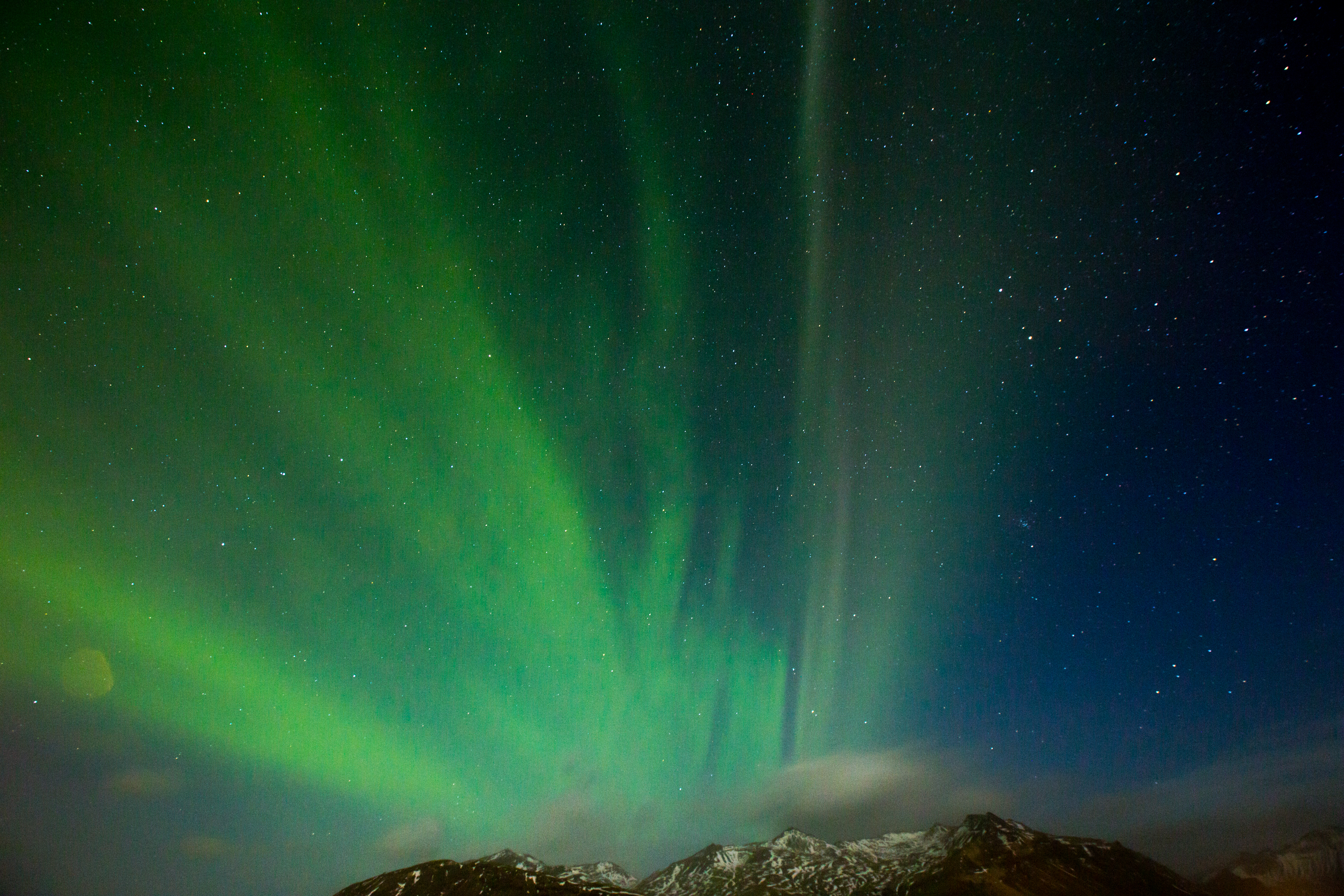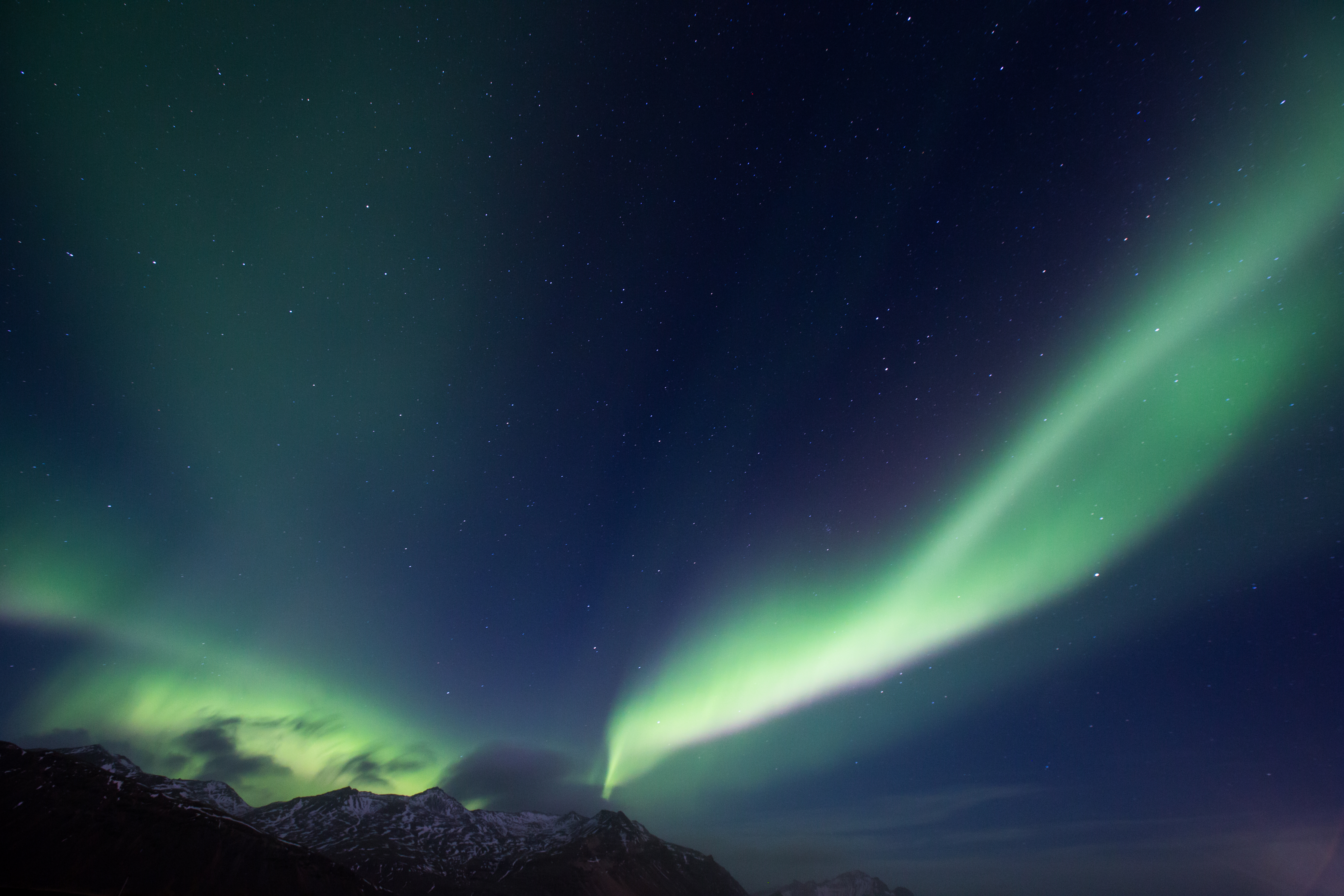 A few hours later I heard a great commotion outside my room. Out of nowhere, the northern lights were cresting the nearby mountain right outside my room. Everyone was outside my room excitedly watching this amazing and unexpected show. At first, the lights were just a dull green. Over time they grew to a more vivid green easily seen by the naked eye. As they stretched across the sky they started to dance and hues of purple started splitting from the green. For over an hour we all sat outside our rooms as we watched the brilliant display. It was such an amazing show that one of the couple promptly cancelled their Northern Lights tour that was planned for the next night.