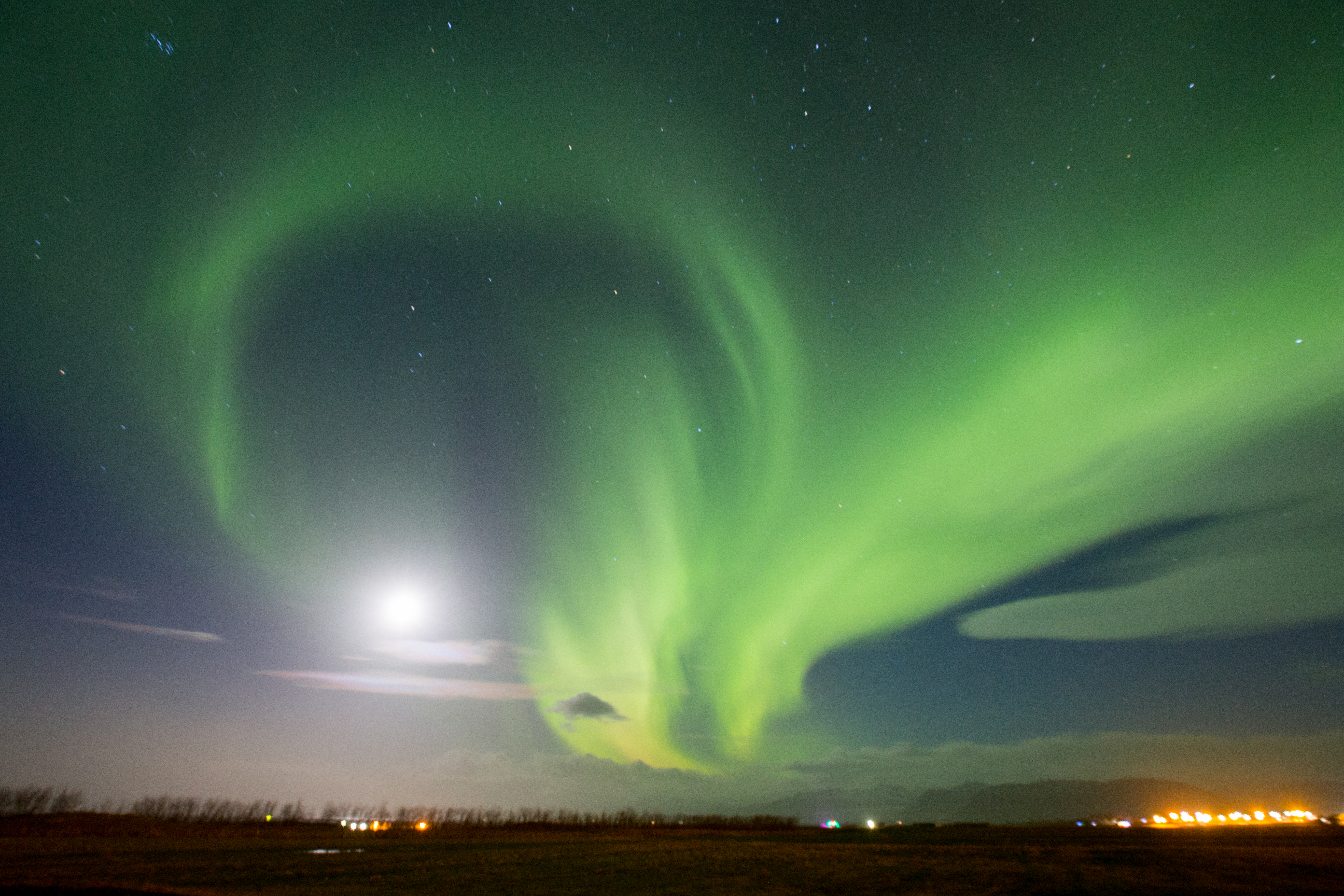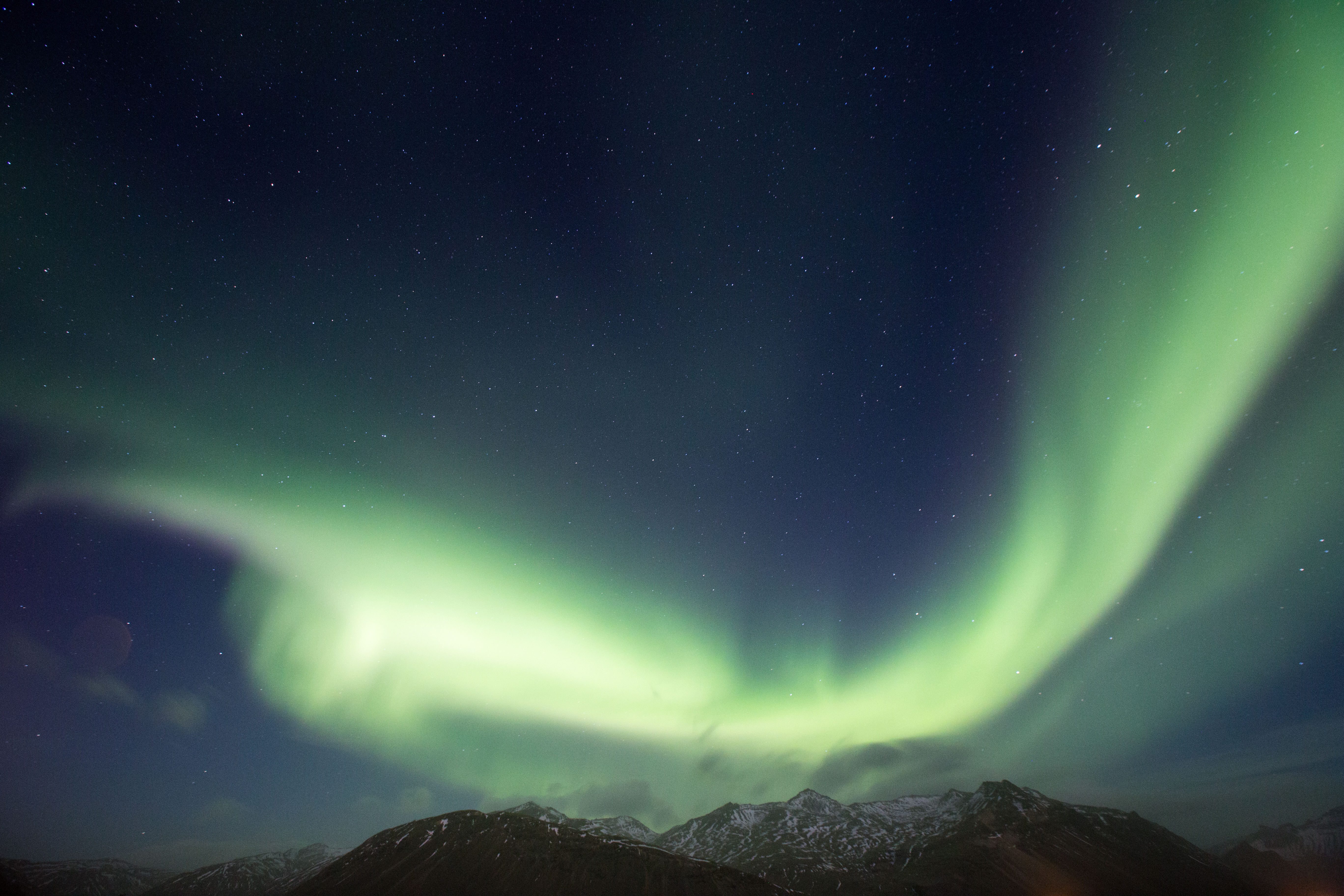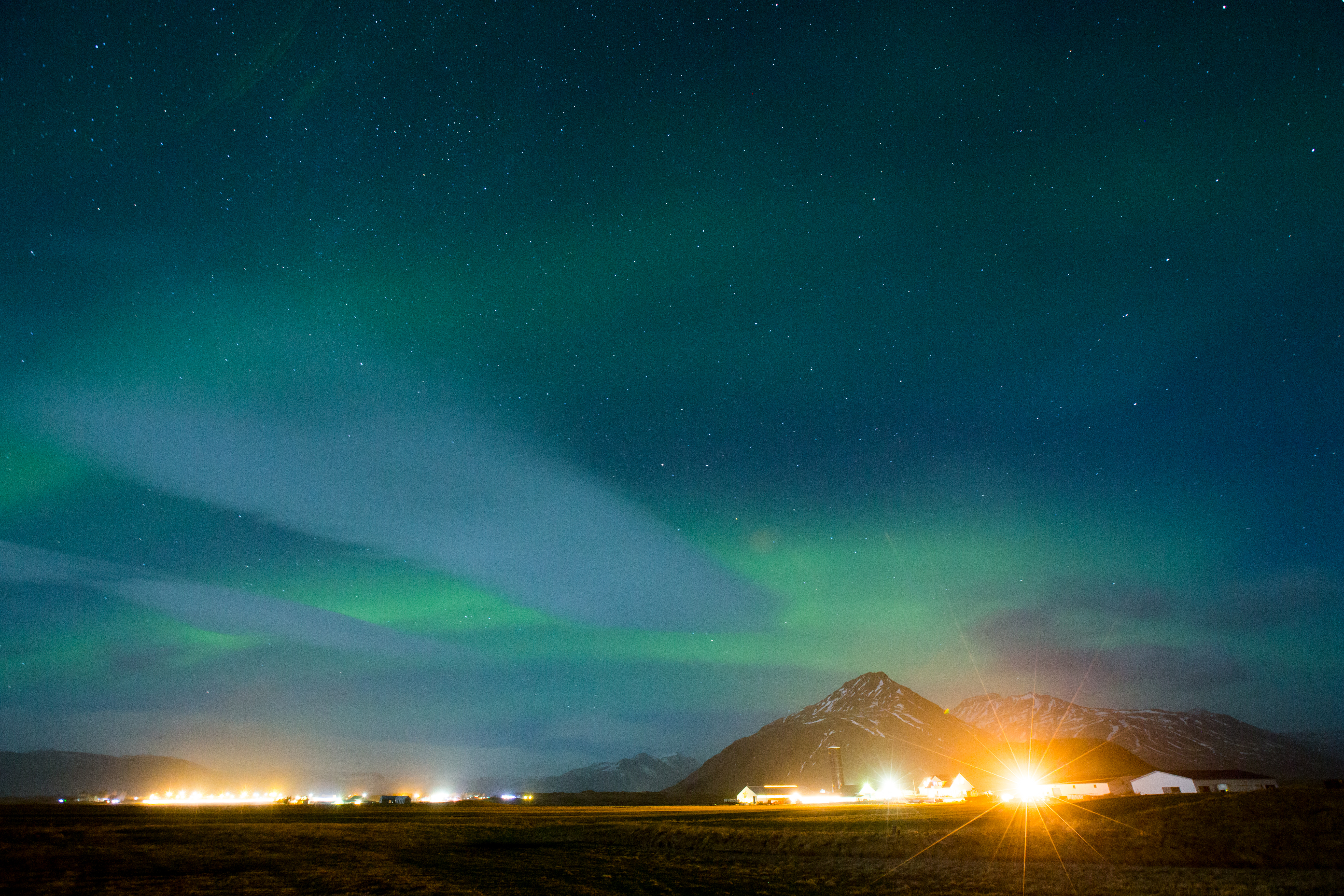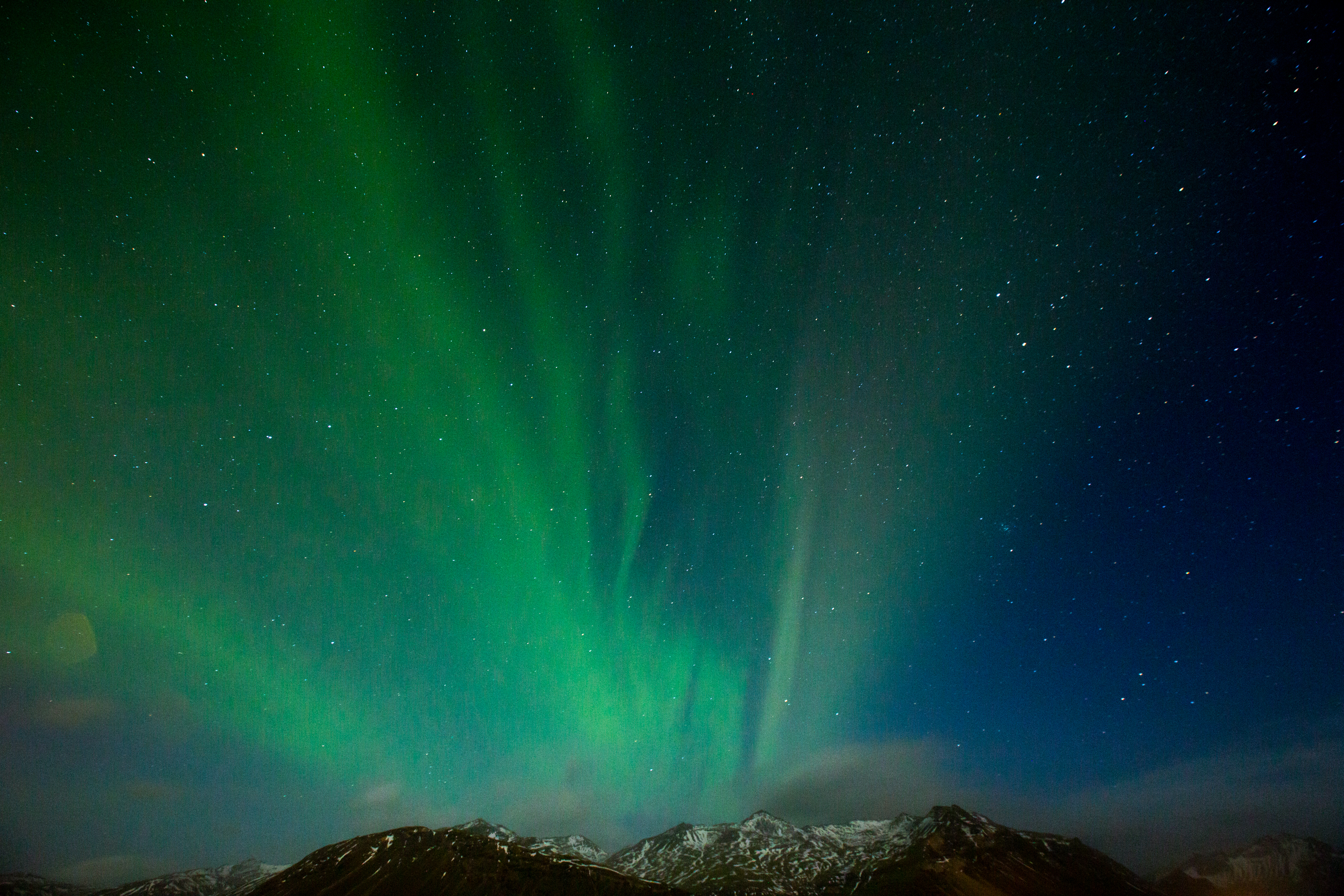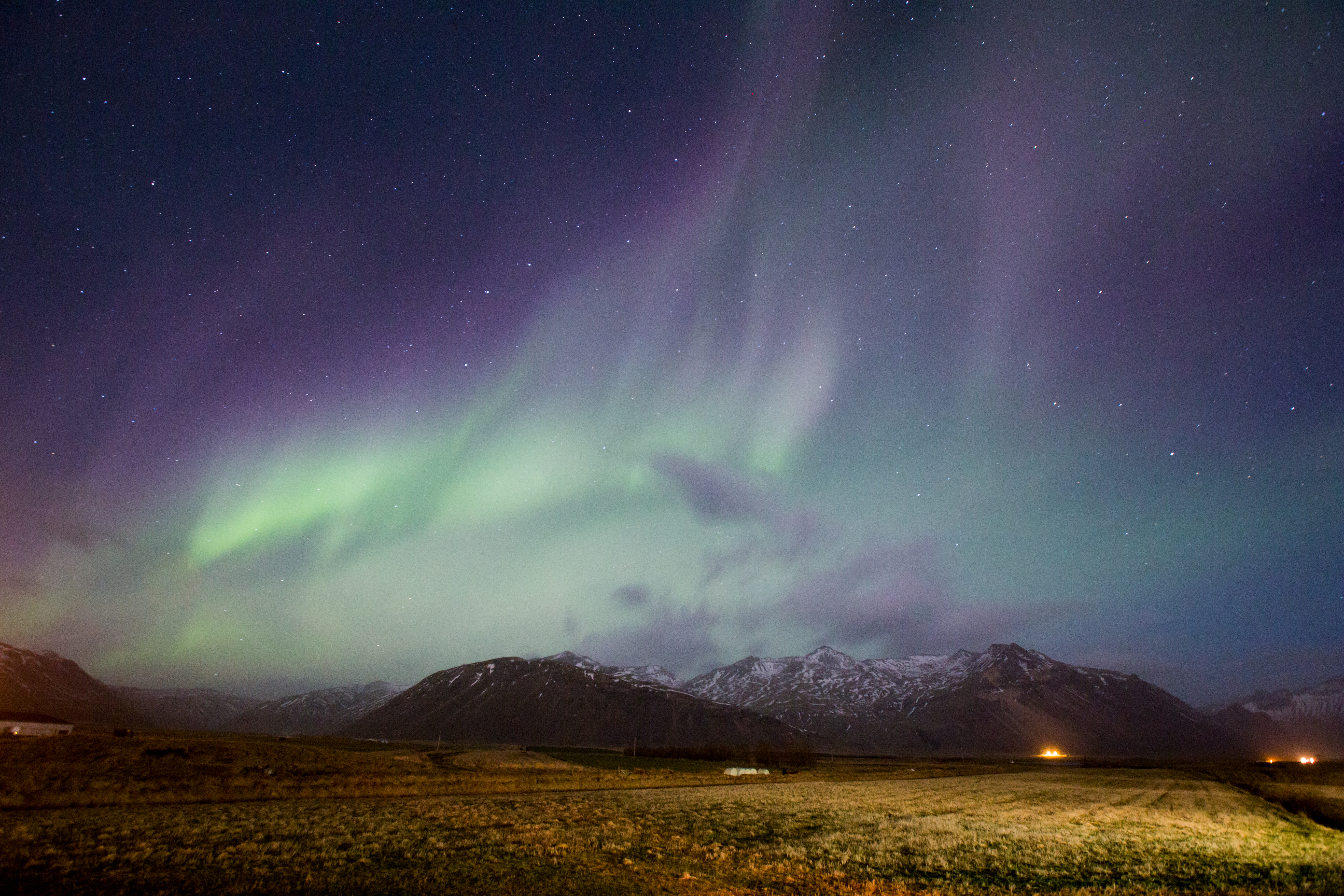 A few hours later I heard a great commotion outside my room. Out of nowhere, the northern lights were cresting the nearby mountain right outside my room. Everyone was outside my room excitedly watching this amazing and unexpected show. At first, the lights were just a dull green. Over time they grew to a more vivid green easily seen by the naked eye. As they stretched across the sky they started to dance and hues of purple started splitting from the green. For over an hour we all sat outside our rooms as we watched the brilliant display. It was such an amazing show that one of the couple promptly cancelled their Northern Lights tour that was planned for the next night.