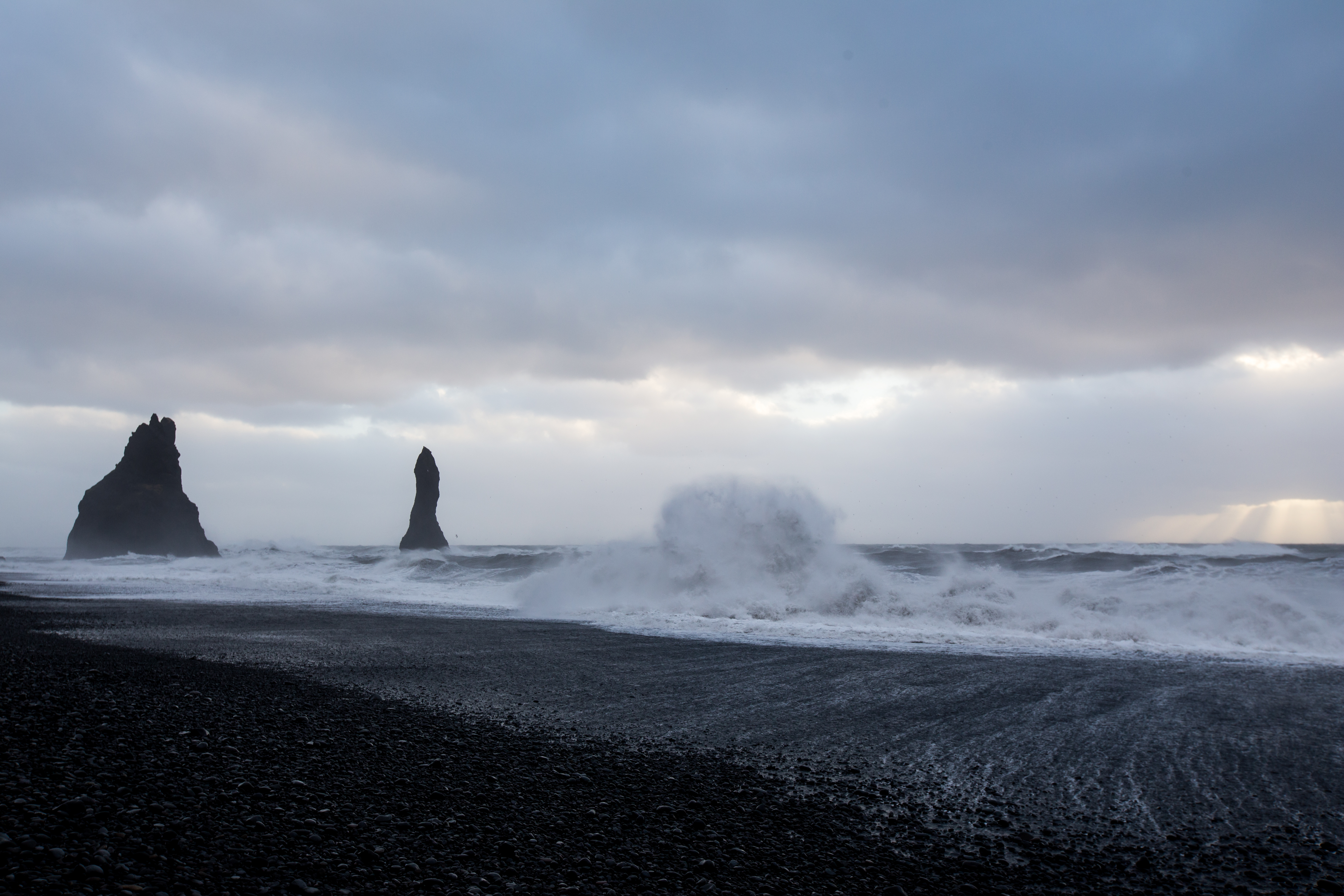 I picked up my rental and hit the road on my 6-hour drive to Höfn so that I would be nearby to my ice cave tour. Of course the ride took longer because I decided to stop off at the Halsanefshellir basalt cave and black sand beach, as well as Jökulsárlón glacier lagoon. My stops were short at each place, partly because the ice lagoon and accompanying Diamond Beach were underwhelming with not much ice washed up on the beach and the fact that there were over 60mph winds battering me while I tried to snap a few shots did not help either.